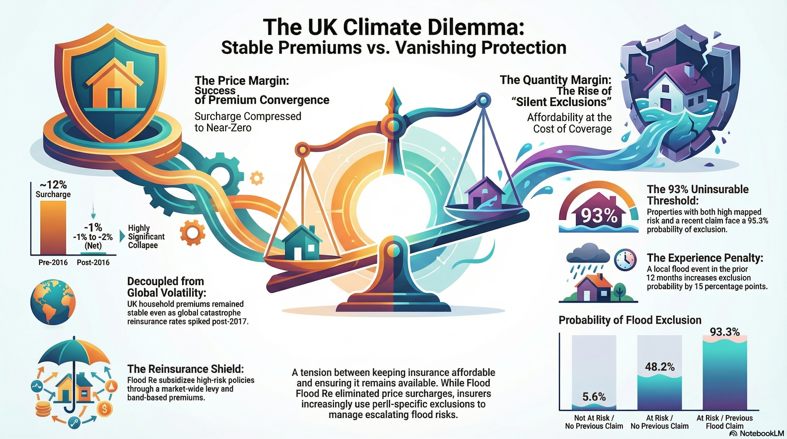 While Flood Re has solved the "price margin" problem, it has failed to close the "quantity margin." Our findings identify a persistent reliance on peril‑specific exclusions. This rationing is the primary mechanism insurers use to manage residual catastrophe and aggregation risk.
