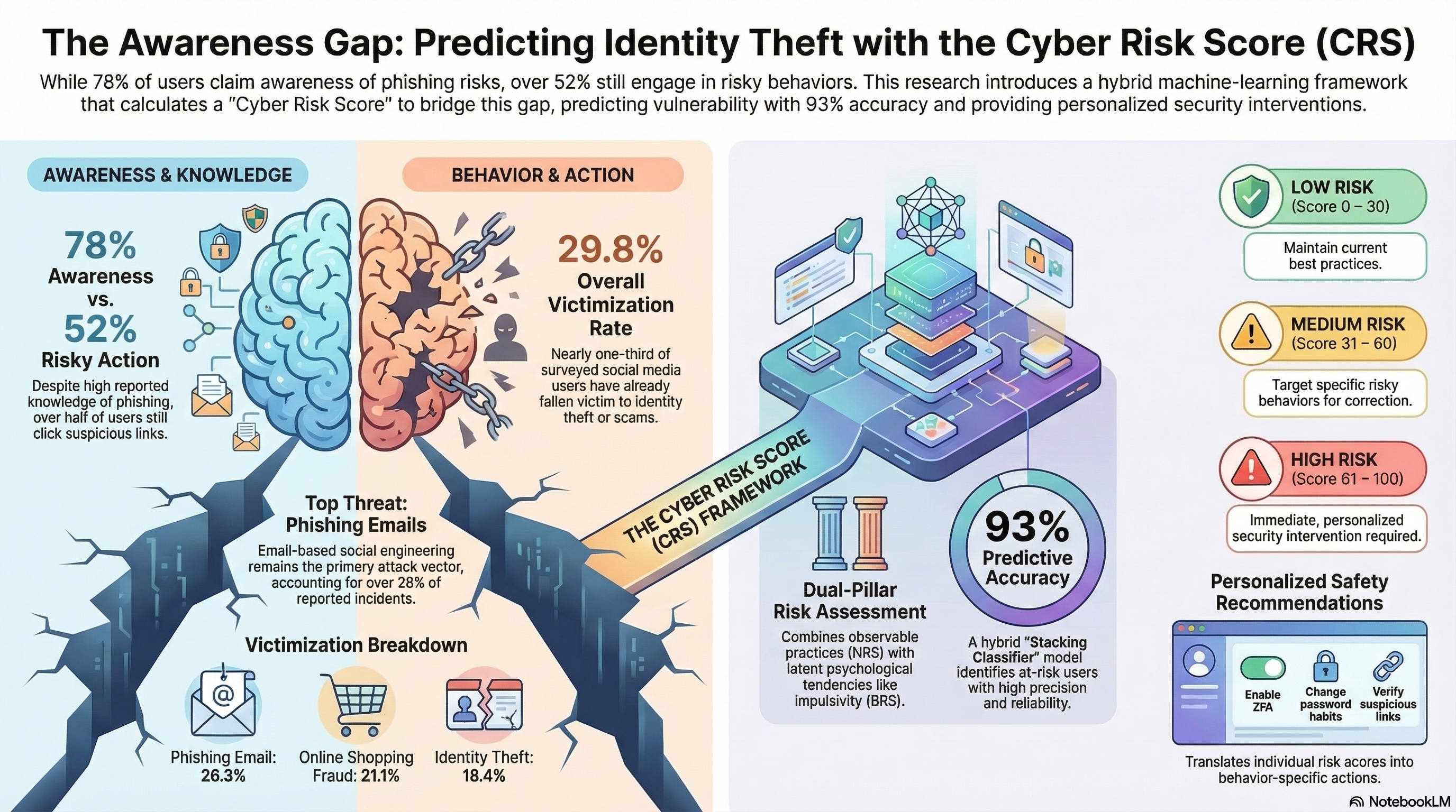 Where humans fail to see their own digital blind spots, a "digital jury of algorithms" succeeds. The research utilized a "Hybrid Stacking Classifier"‑a sophisticated framework that combined the strengths of three major models: Random Forest, XGBoost, and CatBoost. While CatBoost was the strongest individual contributor, the "stacking" method allowed the AI to smooth out individual model errors, resulting in a remarkable 93.14% accuracy rate in predicting potential victims.