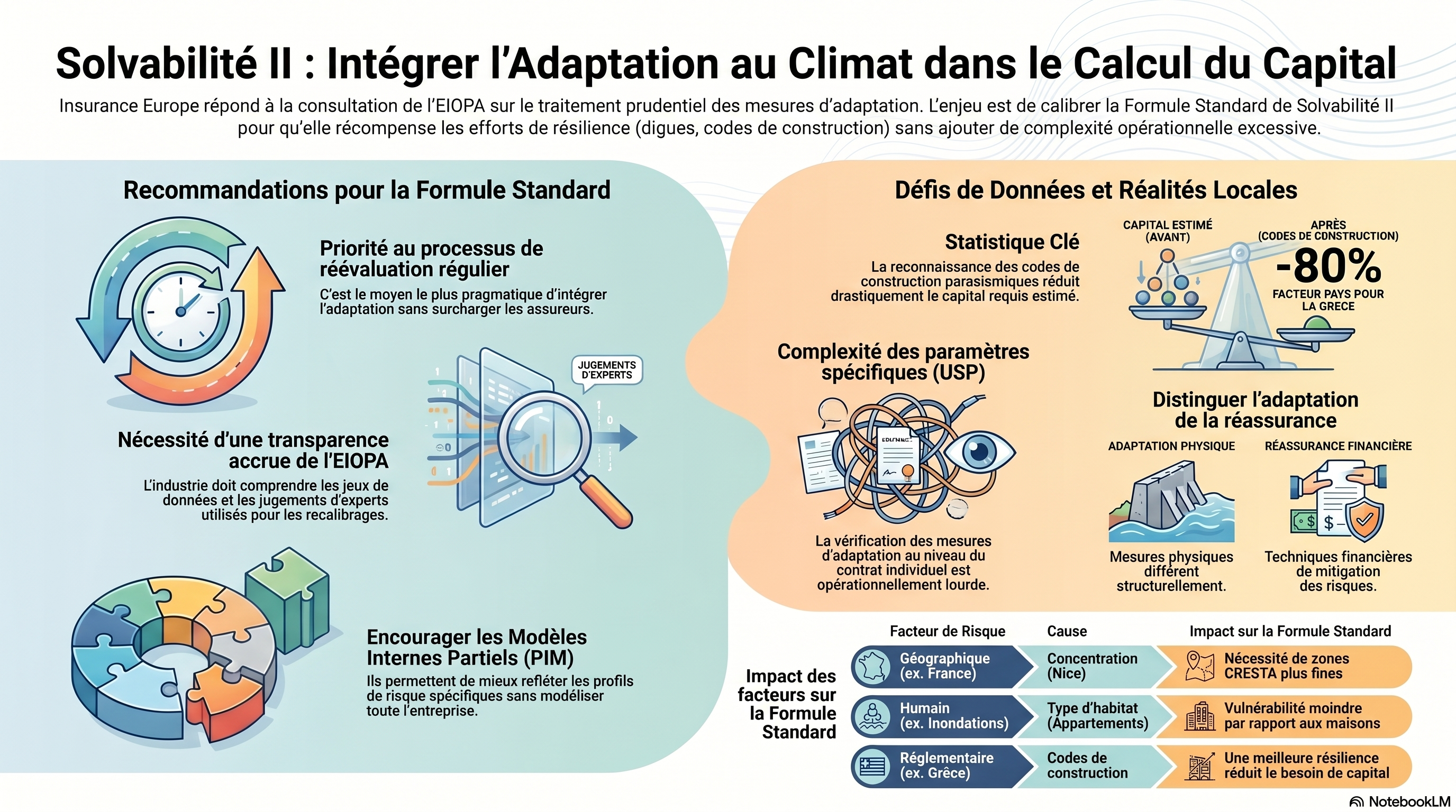 - Incertitude technique : L'absence de précision sur les codes de construction utilisés par l'EIOPA fait craindre des facteurs de vulnérabilité surévalués, gonflant artificiellement le SCR.